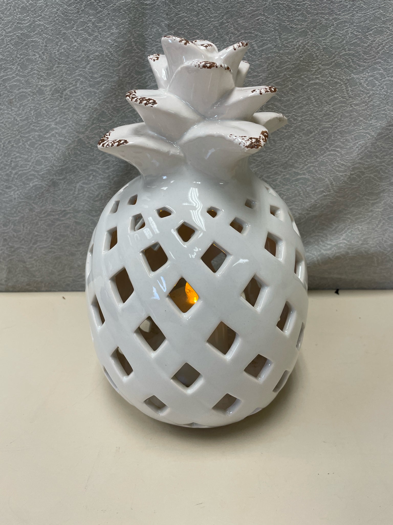 WHITE CERAMIC PINEAPPLE LIGHT UP