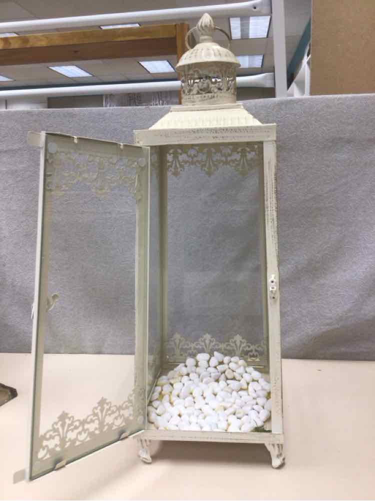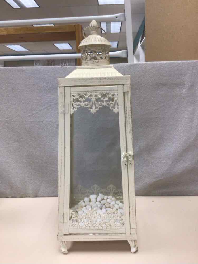 WHITE METAL GLASS LANTERN